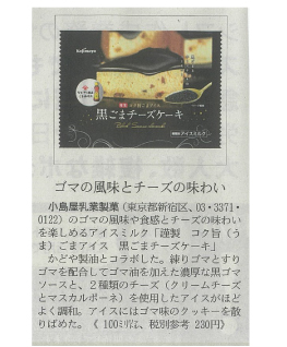 謹製コク旨ごまアイス 黒ごまチーズケーキが日経MJ新製品紹介枠にて掲載されました。